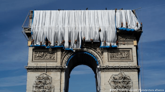Επρόκειτο για μια εικαστική παρέμβαση που ποτέ πριν δεν είχε γίνει στην Αψίδα του Θριάμβου αλλά το αρχιτεκτονικό δίδυμο Christo και Jeanne- Claude είχε τολμήσει κάτι ανάλογο παλαιότερα στο Γερμανικό Κοινοβούλιο στο Βερολίνο αλλά και στο Pont Neuf στο Παρίσι πάλι, το 1985.