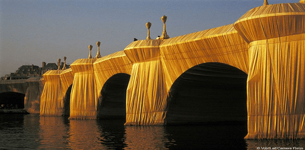 Το Pont Neuf στο Παρίσι τυλιγμένο με κίτρινο μανδύα από το γνωστό δίδυμο.